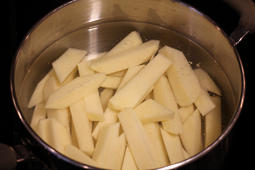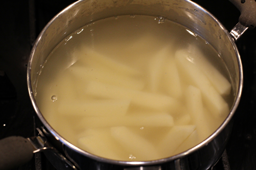 - When boiling the chips, aim to get them so a sharp knife can easily penetrate the outer layer of the chip, leaving the centre reasonably solid. When trying this method for the first time, it’s better to take off the boil sooner because if the chips are boiled for too long they will fall apart.