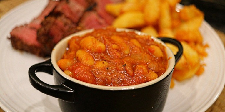 I watched Jamie Oliver’s “American Road Trip” a couple of weeks ago. One recipe that stood out was when he cooked baked beans cowboy-style whilst camping in the great outdoors. Looked great with strips of steak seared on a cast iron pan over a campfire.