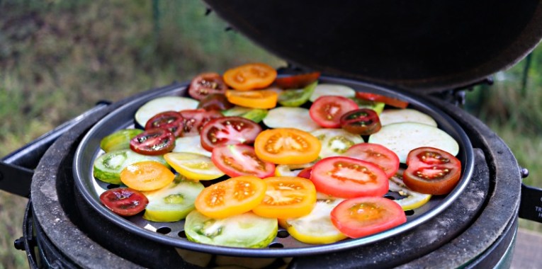I believe in making the most of available space, whether it’s storing herbs, stacking pans … or cooking in a Big Green Egg. The Egg has a big dome that normally has nothing in it. Most ovens have two shelves, why not the Egg as well?